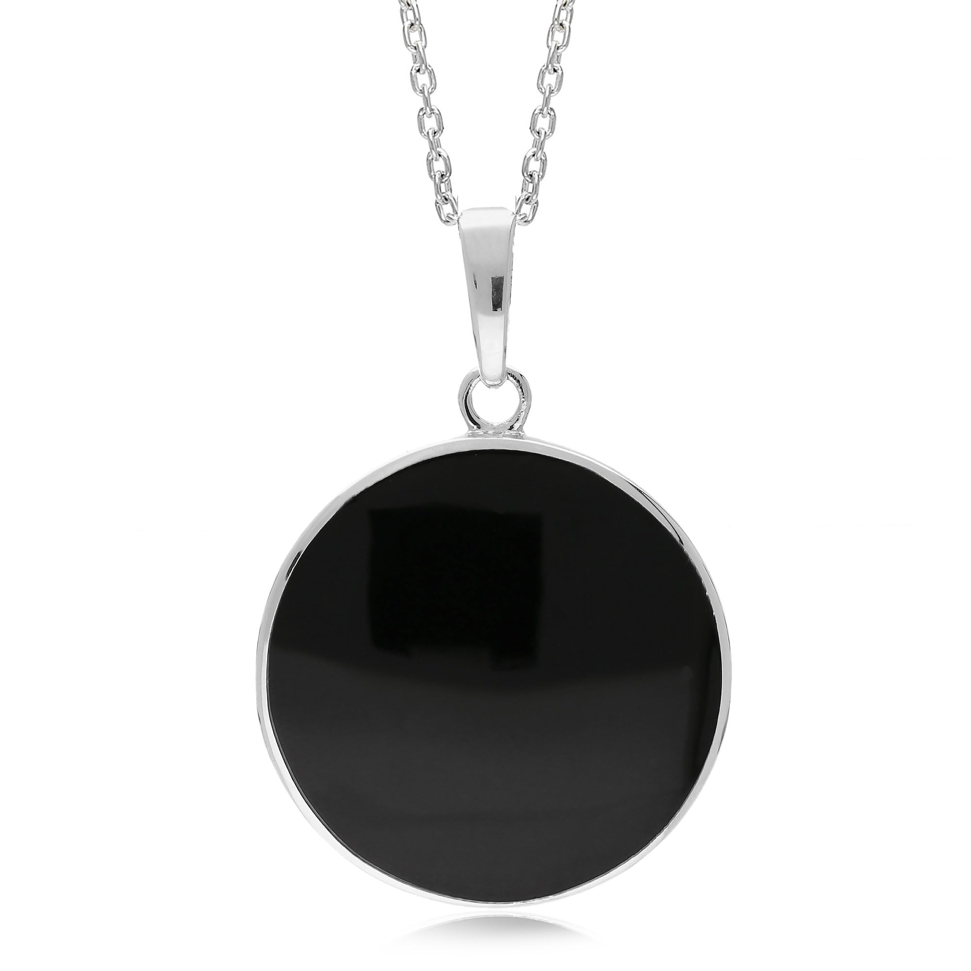 Sterling Silver Whitby Jet Large Plain Round Pendant