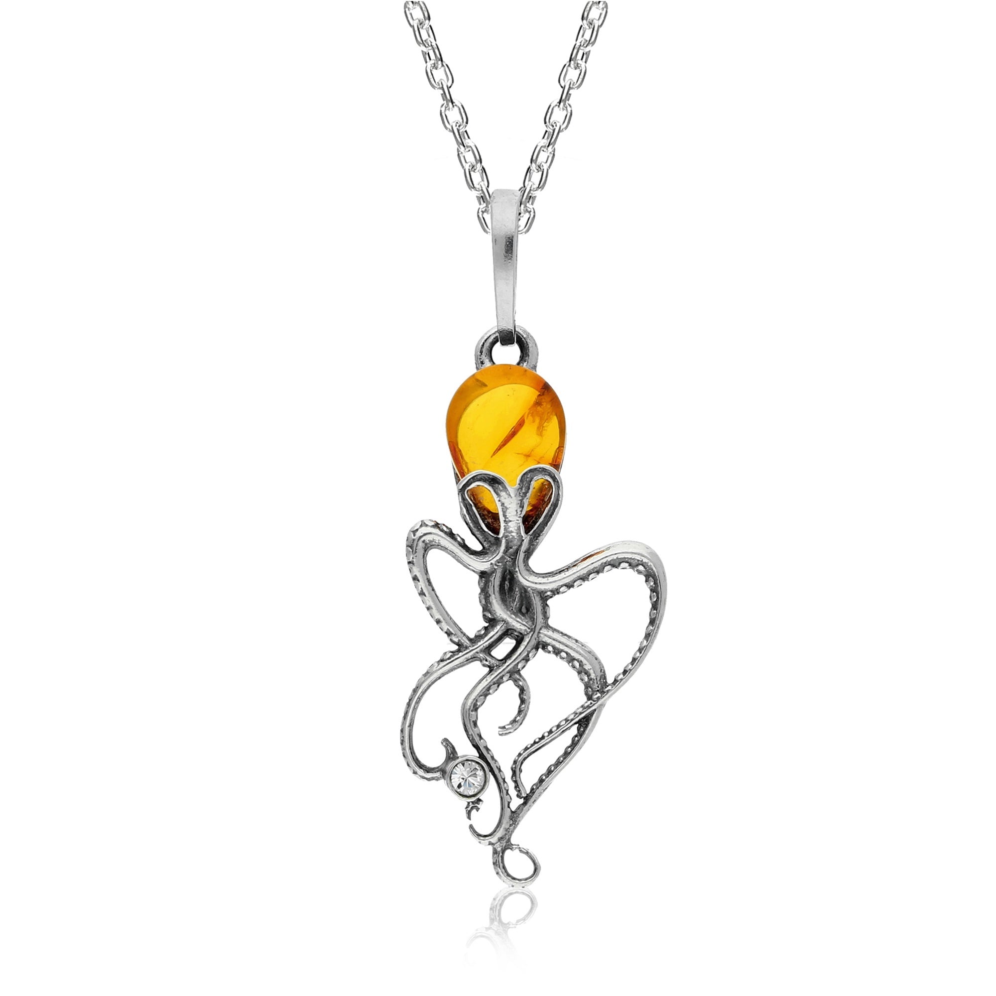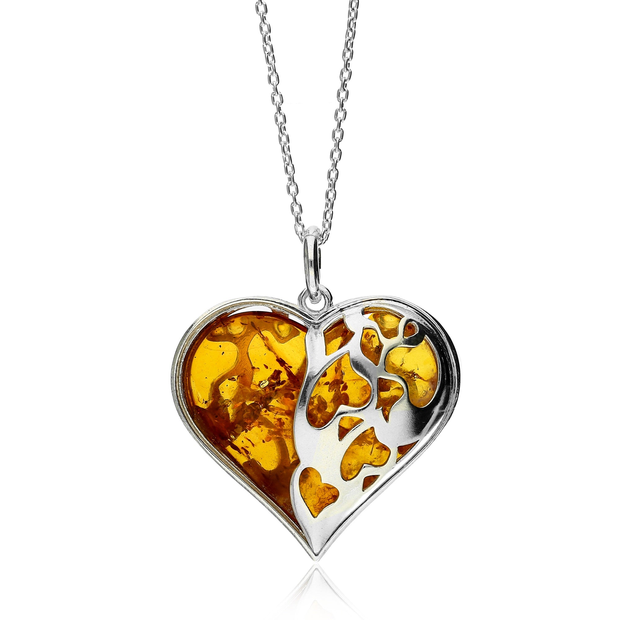 Though the trees that produced the sap that now forms these beautiful stones are now long extinct, their tradition lives on as here at the Yorkshire Jewellery Company; our range of Amber Jewellery complements the stone’s natural beauty. From simple sparkling amber pendants on dainty necklace chains to designs inspired by the nature from which amber comes, including our unique Tree of Life pendants, amber stones alongside twisted celtic knots, and glimmering amber entwined in the legs of a spider. It is the minimalist pieces however where amber really comes into its own, allowed to shine on its own set against Sterling Silver. You’re bound to find a piece of amber jewellery to suit any style at the Yorkshire Jewellery Company.