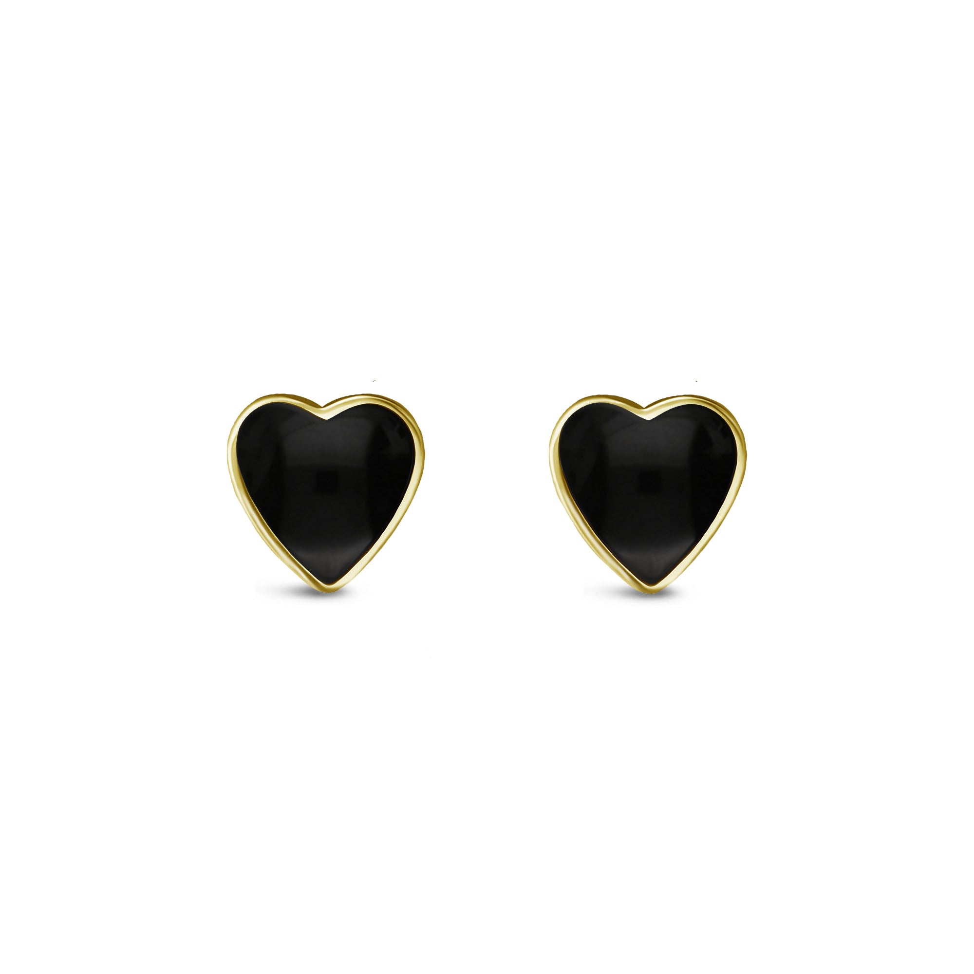 9ct Yellow Gold Whitby Jet Heart Stud Earrings
