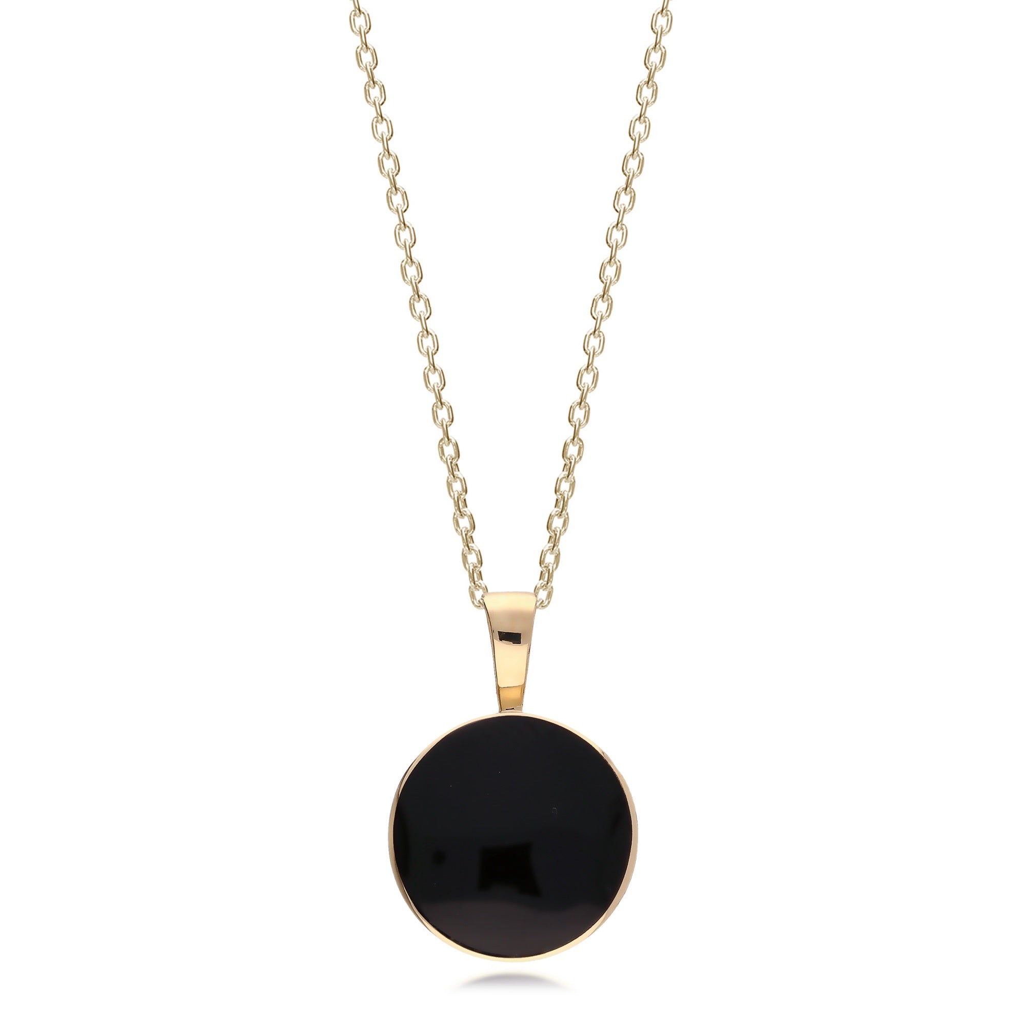 9ct Yellow Gold Whitby Jet Plain Round Pendant